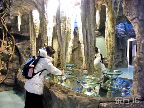 ![]() 人一靠近,水便會(huì)從鐘乳石中自動(dòng)流下。 ![]() 男廁所的標(biāo)志-逍遙閣。 佘山月湖--上海很大的人工湖,水域面積456畝,被翠綠的東佘山、薛山、鳳凰山環(huán)抱。在佘山月湖景區(qū)內(nèi),有一個(gè)造價(jià)500萬的豪華廁所,女廁所名叫"輕松坊"、男廁所名叫"逍遙閣"。廁所做成一個(gè)溶洞的模樣,洞內(nèi)有枝蔓攀爬在洞壁上,還有一排鐘乳石,鐘乳石下面就是玻璃的洗手碗盆,人一靠近,水便會(huì)從鐘乳石中流下,在燈光的襯托下顯得格外惹眼。(文/中新網(wǎng)) ![]() |