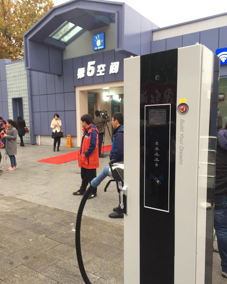昨天上午,北青報(bào)記者來(lái)到房山區(qū)政府對(duì)面的小廣場(chǎng)上,一棟新建成的藍(lán)色建筑格外引人注目。在這座建筑門(mén)口,見(jiàn)不到“WC”,而是標(biāo)有醒目的“第5空間”幾個(gè)大字。同時(shí),外墻上掛有公廁、ATM、無(wú)線局域網(wǎng)和電動(dòng)汽車(chē)充電樁等多個(gè)圖標(biāo)。