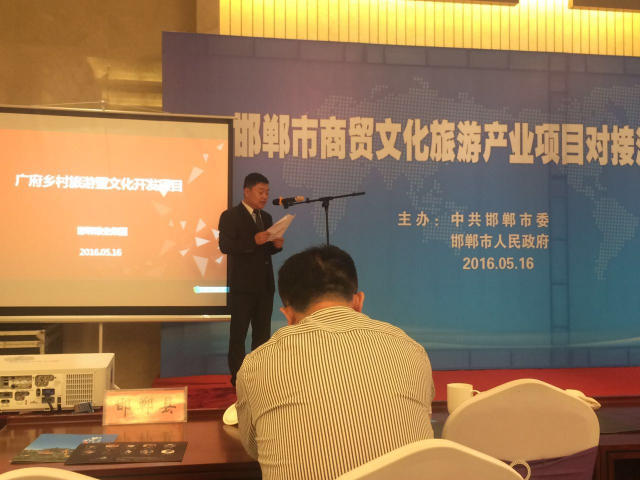 此次對接洽談會上邯山區旅游局局長陳英女士對復建“趙王城”項目進行了推介、邯鄲市永年縣對佛山文化旅游產業園區的3D動物園項目進行了推介、京娘湖景區策劃總監溫媛麗女士對京娘湖以及東、北太行山一帶旅游發展進行了推介、邯鄲廣府水城項目進行了推介。