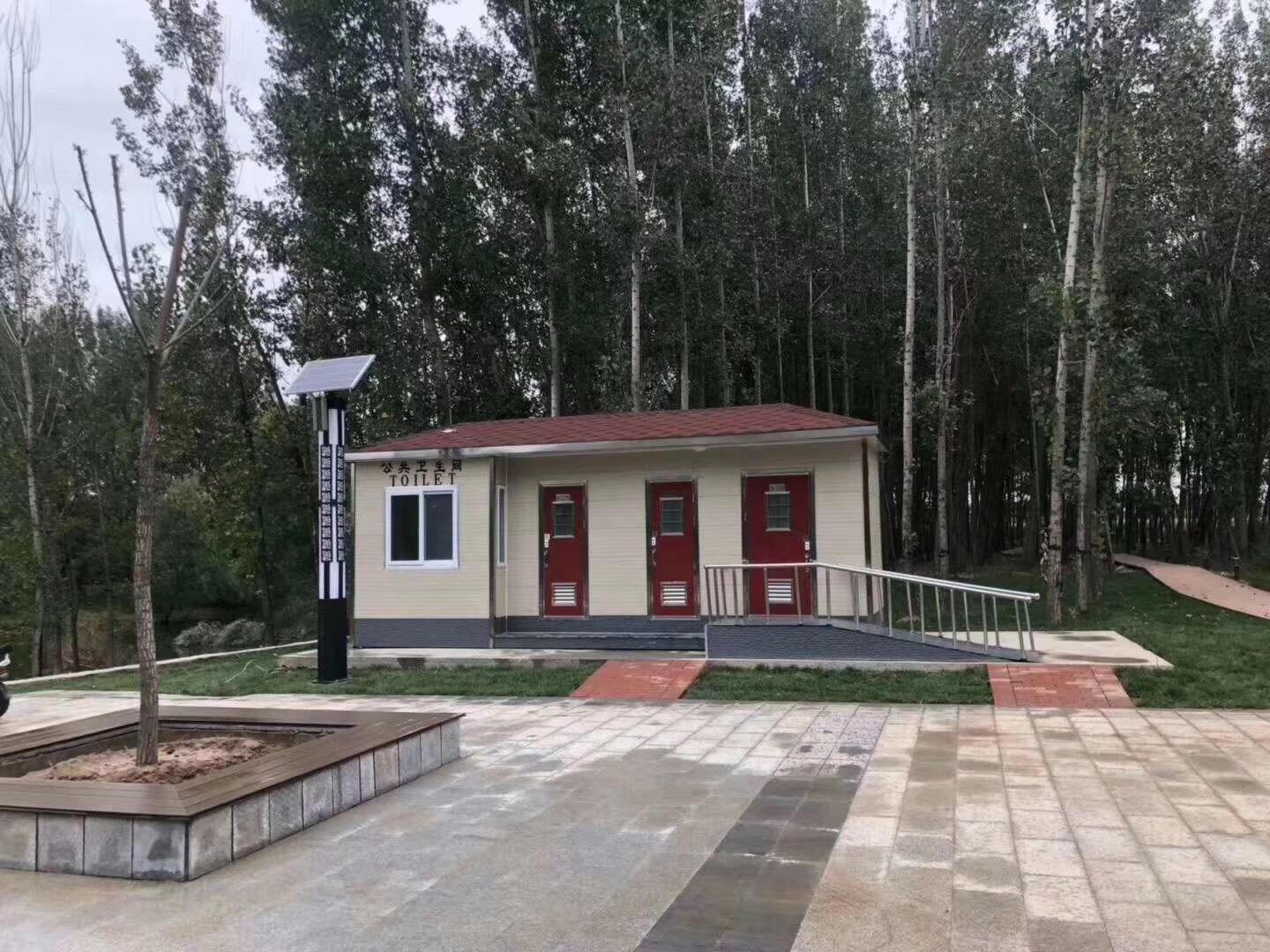 雨施捷專為雜技武術之鄉——滄州吳橋盡心設計的公廁,整個造型偏向中式風格,屋頂敷設紅瓦,墻體使用淺黃色的木紋肌理裝飾板,再配置精致的紅色廁門,與周邊環境融為一體,廁所內部設施齊全,同時為特殊人群配備的第三衛生間更能體現出這座城市的用心之處 ,真正做到了為民所想為民所需。