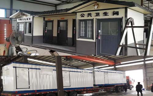 活動房廁所可以在工廠預制完成,用卡車運送到現場即可使用。針對一些特殊場地無法直接排入污水管道的地方還搭配了特制的化糞池箱。