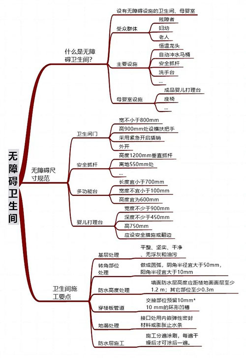 無障礙衛生間的施工要點為方便,重要的是在施工中做好防水處理。那么如何做好防水處理,需記住以下幾要點: