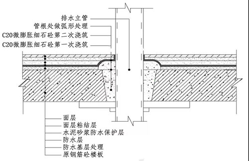 先在管根部位涂刷一遍涂料,然后鋪貼一層0.3米寬的耐堿玻纖布或聚酯纖維無紡布做為附加層,搭接寬度不小于0.1米,附加層上面需再涂刷一層涂料。