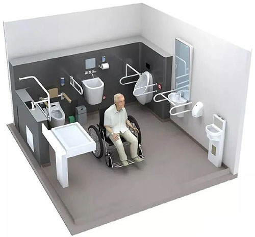 現(xiàn)在的公共衛(wèi)生間不僅是一個可以提供人們上廁所的空間,現(xiàn)在又給它賦予了更多的功能,如為嬰兒更換尿不濕、換衣,整理容妝。設(shè)計行李架掛衣的空間,專為行動不便的人士準(zhǔn)備的隱障礙間等等,更多功能空間的需求,對于空間的設(shè)計也提出了更多的要求。