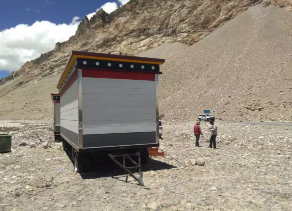 珠峰大本營拖車式太陽能型環(huán)保廁所已經(jīng)建成投入使用了。為大本營的登山愛好者和游客們提供了良好舒適的如廁環(huán)境。整體廁所設(shè)計(jì)藏族風(fēng)格簡潔大方。太陽能廁所采用泡沫封堵型處理工藝。