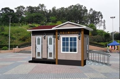 室內(nèi)配置:不銹鋼水沖蹲便器、火燒板防滑地板、化妝鏡、衣帽鉤、手紙盒、廢紙簍、照明燈、換氣扇、指示牌等。