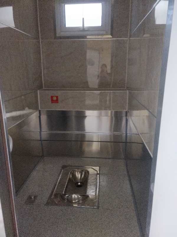 廁所室內配置:不銹鋼蹲便器、火燒板防滑地板、化妝鏡、衣帽鉤、手紙盒、廢紙簍、照明燈、換氣扇、指示牌等。