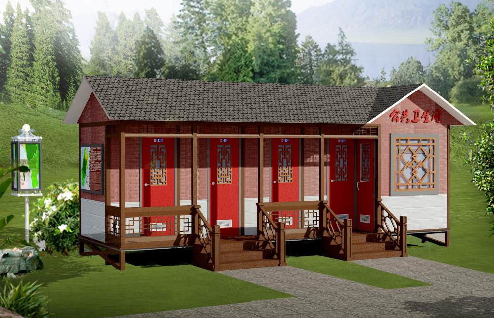 設計理念:受歐美簡單實用主義的影響,廁間內相對寬敞,不會有壓抑感,廠家提供的內裝飾材料有防滑瓷磚、墻壁是拉絲板,擦洗的保潔做起來就容易多了,還有洗臉盆化妝鏡,雕花板外墻,不銹鋼門。 節能環保說明:產品選材方面:廁所墻體所用的金屬雕花板、鋁塑板、彩鋼復合板、防腐木,均為環保無公害產品,具有美觀、隔音、保溫、隔熱、阻燃、重量輕、易安裝等優點。