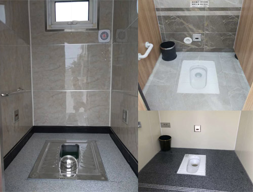 1、基本配置:不銹鋼自動(dòng)開(kāi)啟蹲便器、小便器、防滑火燒板地面、化妝鏡、衣帽鉤、手紙盒、廢紙簍、照明燈、換氣扇、指示牌等